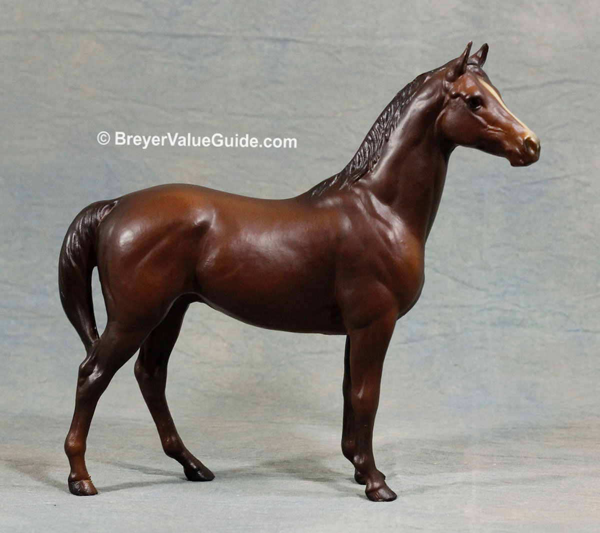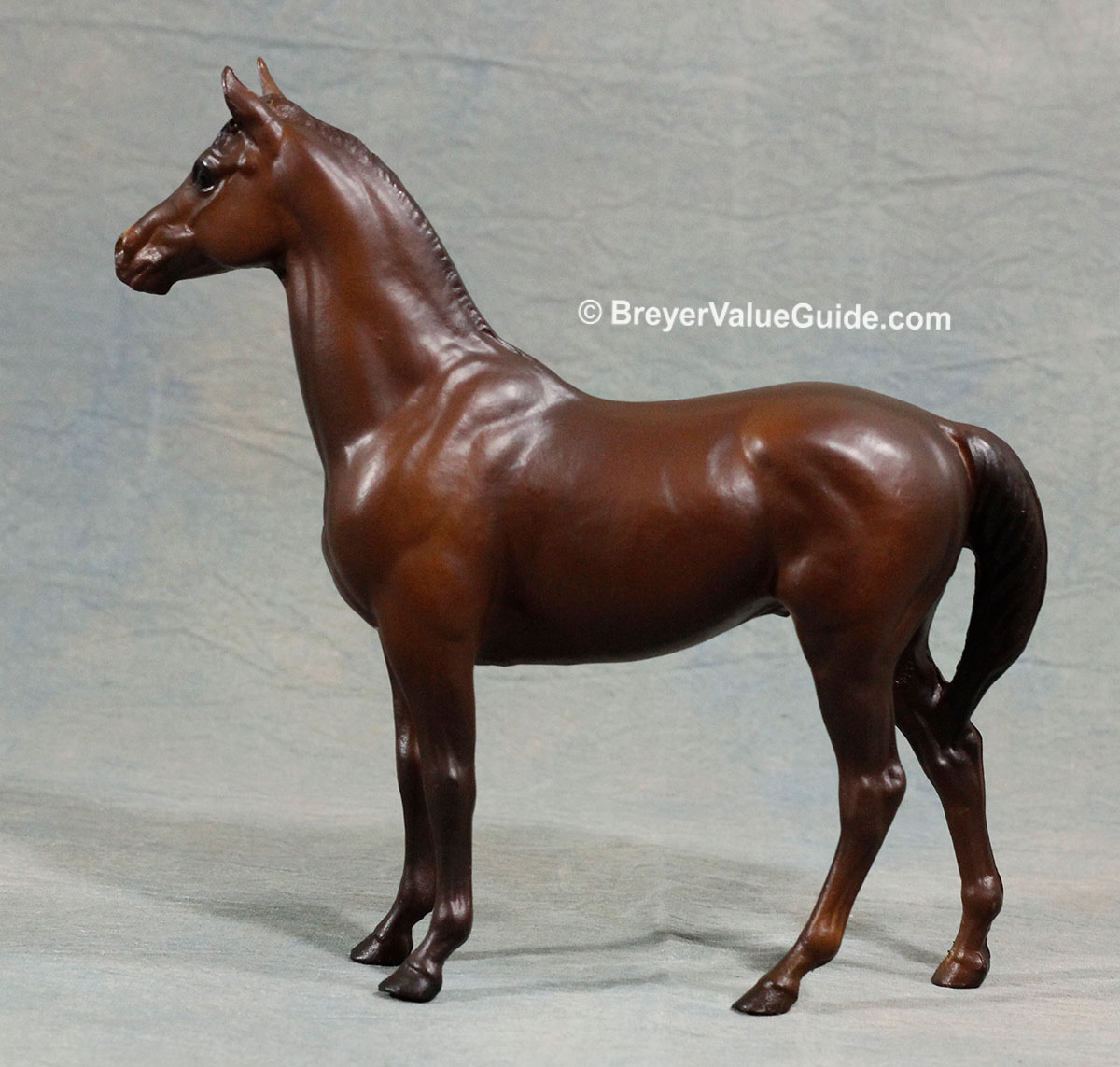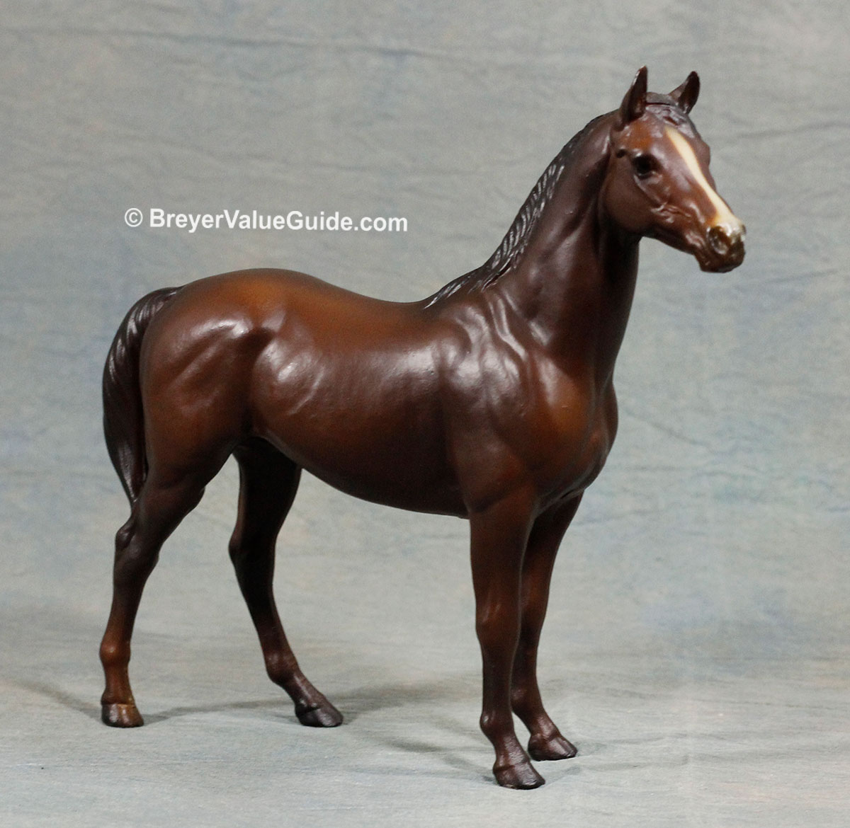 Matte brown; narrow blaze; darker mane and tail; Hobby Centre Toys SR; 1/1000 – with Man O War and Terrang