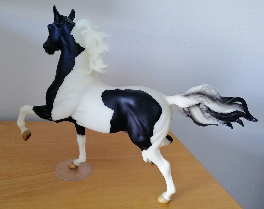 Matte black pinto; stripe-snip; chin spot; 4 stockings; striped hooves