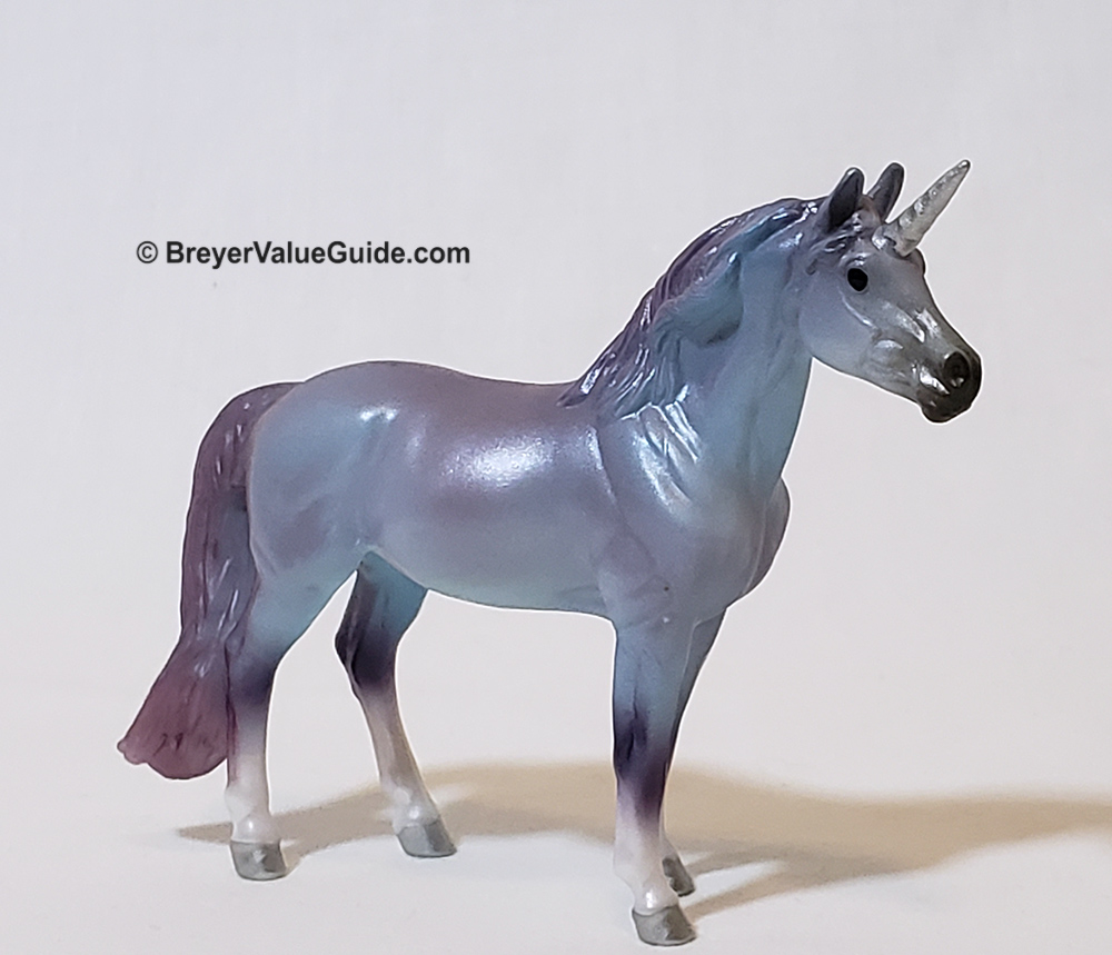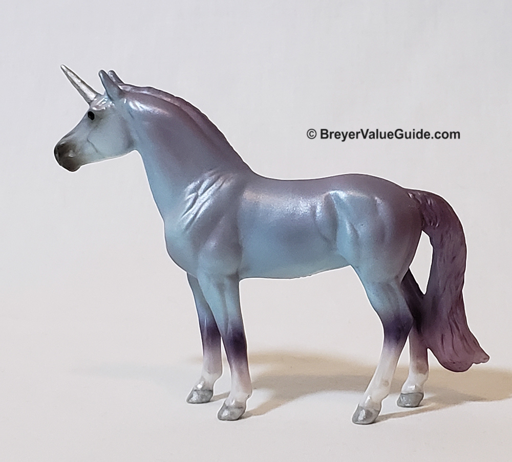 Semigloss shaded light blue and lavender, 4 socks, silver hooves and horn