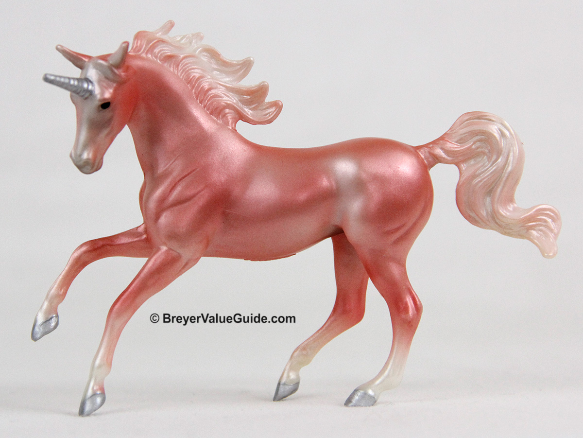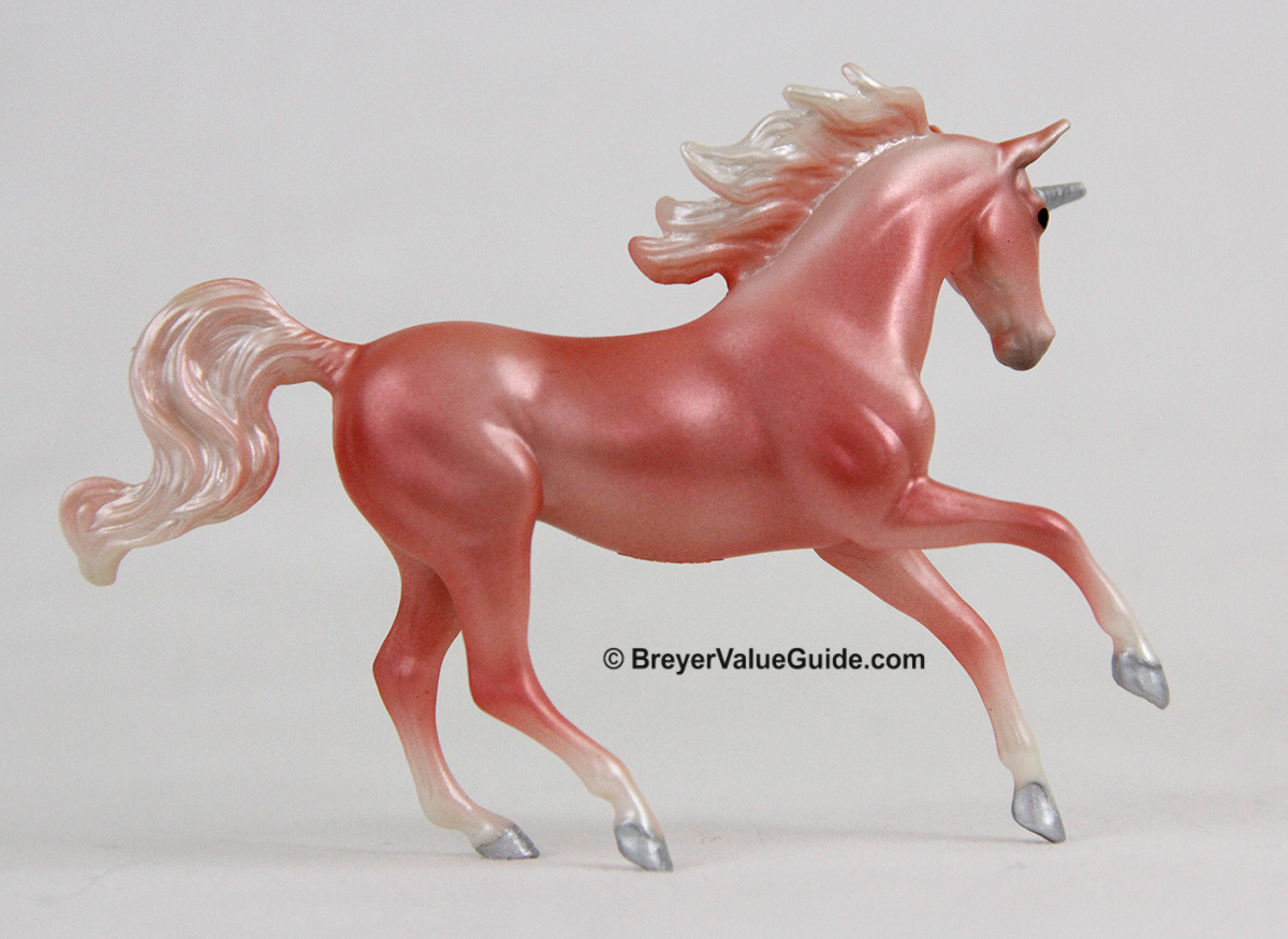 Semi-gloss shaded pink, bald face, 4 socks, silver hooves and horn