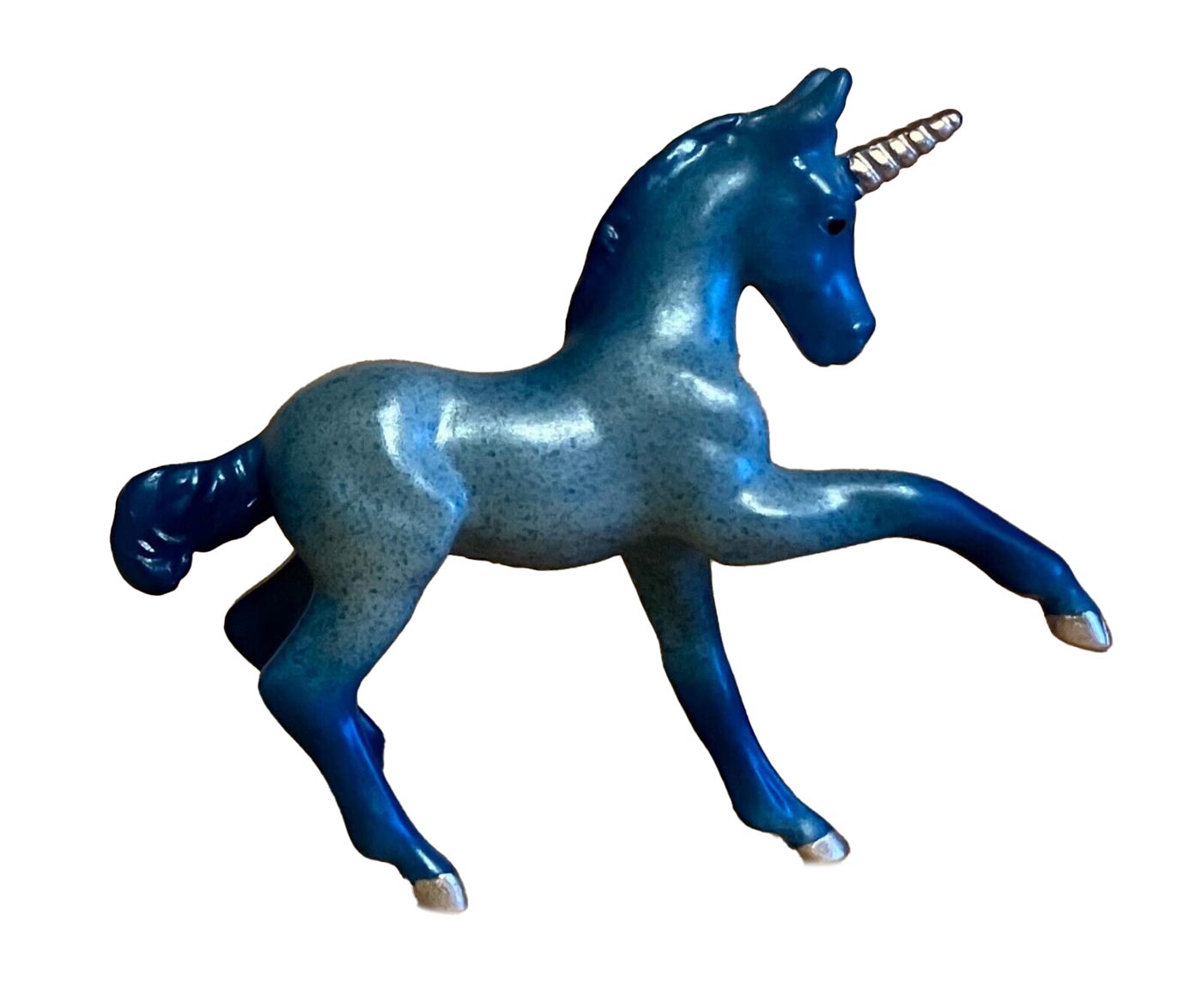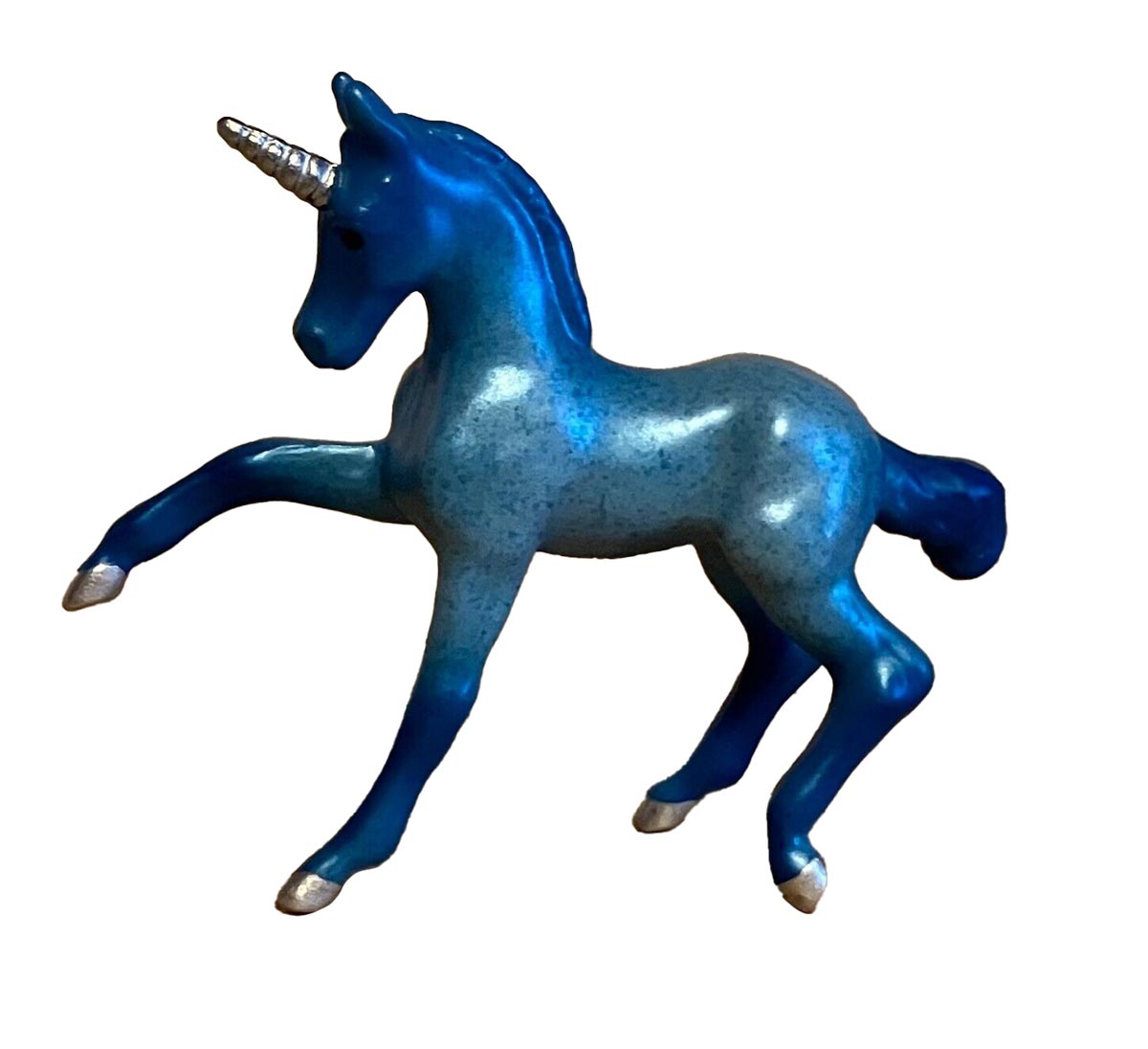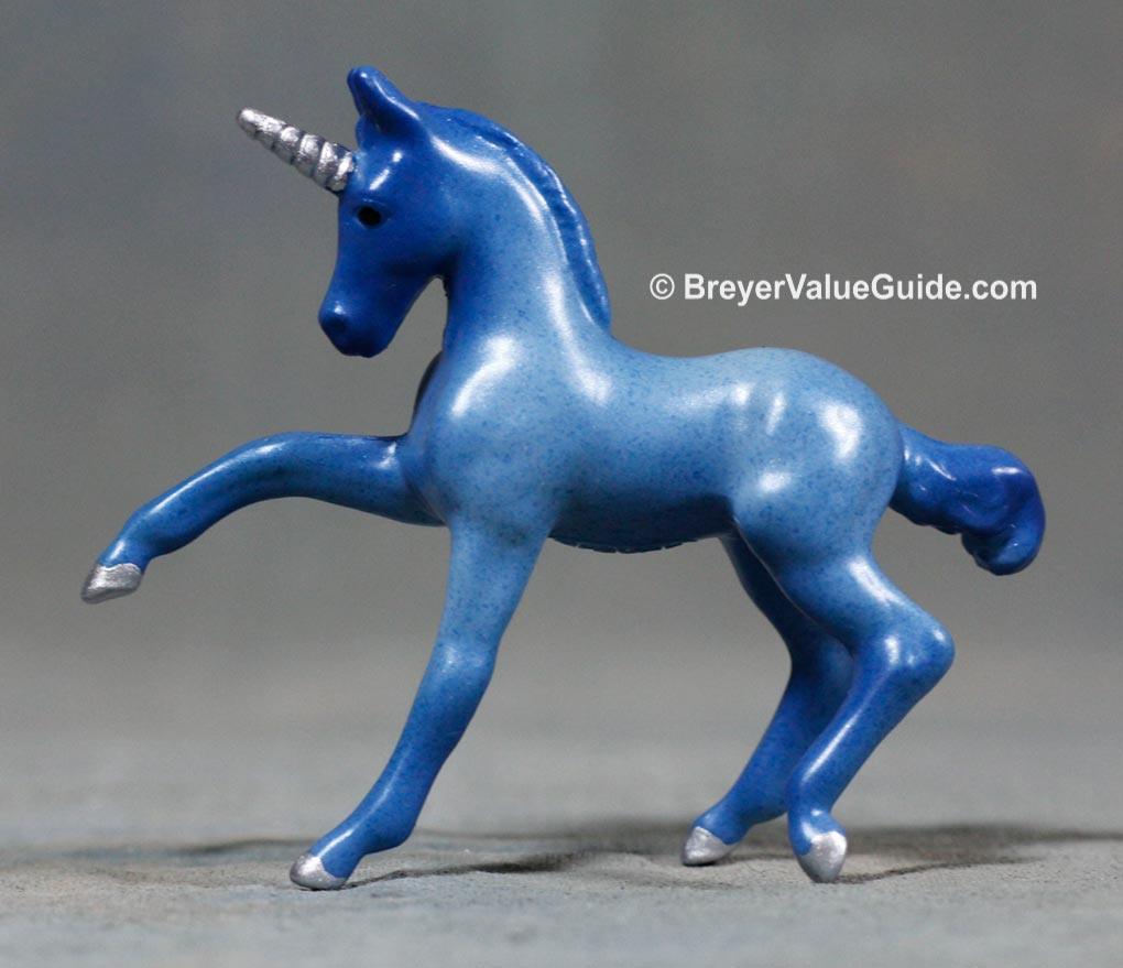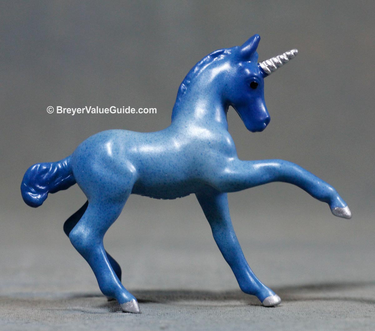 Iridescent shaded dark blue with fleabites, silver horn and hooves, initially released by Tractor Supply – with Alborozo and Warmblood