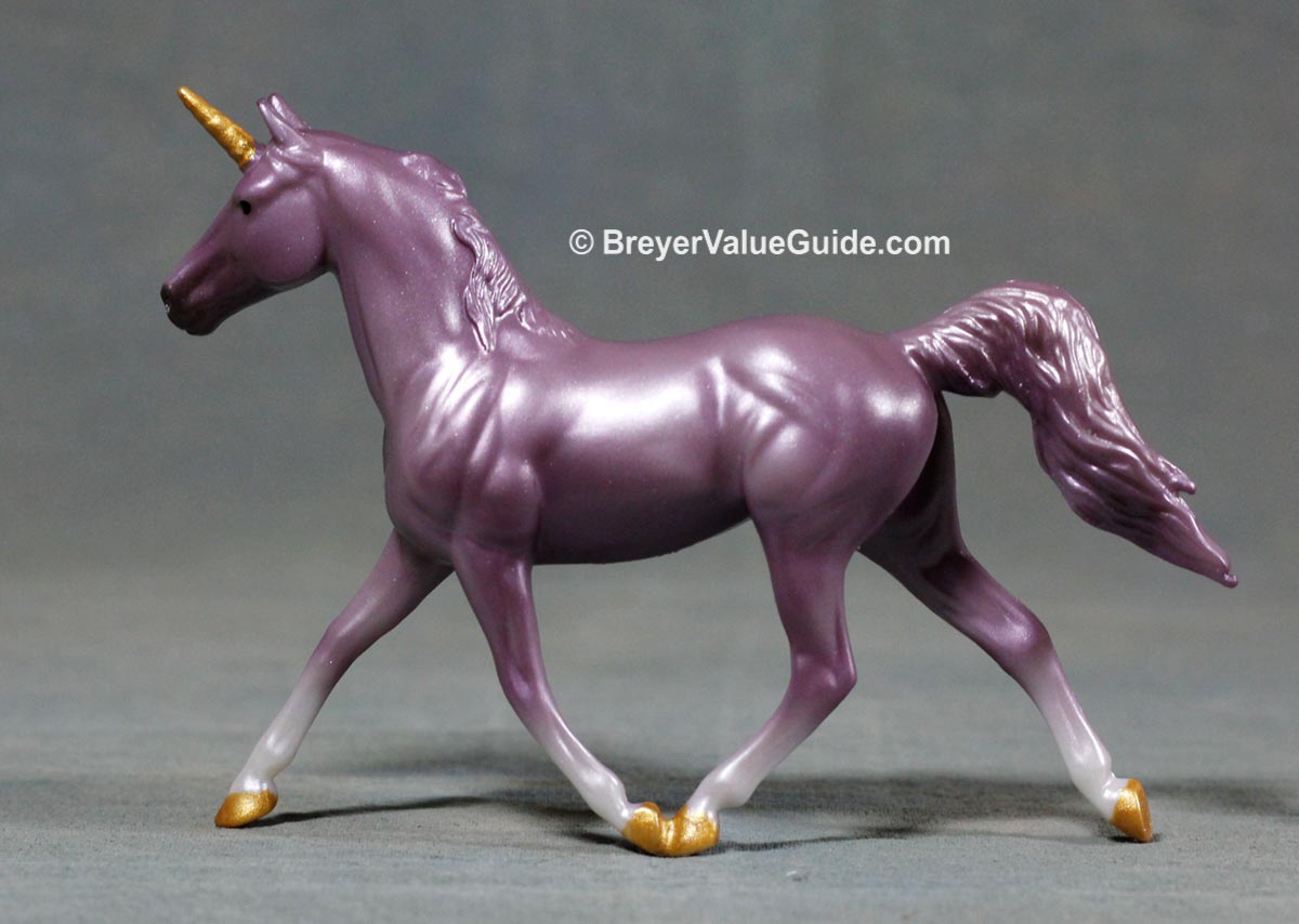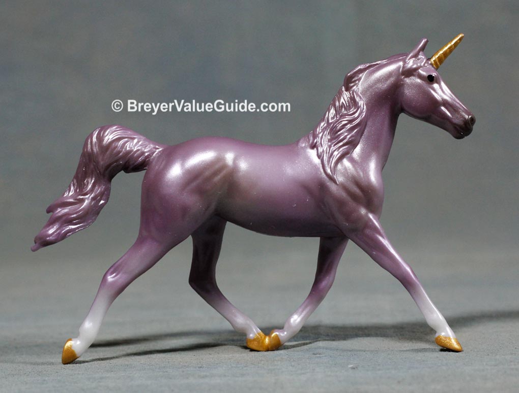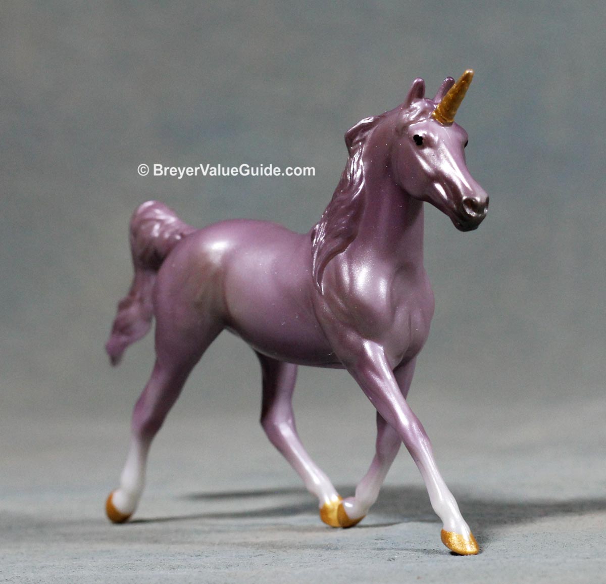 Iridescent light purple, socks, gold horn and hooves, initially released by Tractor Supply – with Haflinger Stallion/Kit and Standing Foal