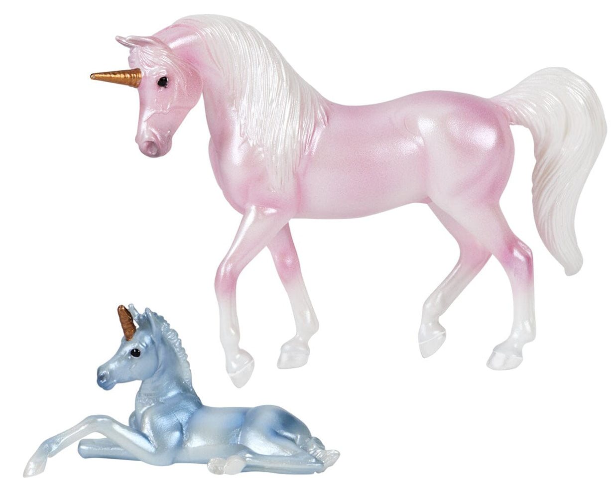 Foal – shimmery shaded blue, gold horn