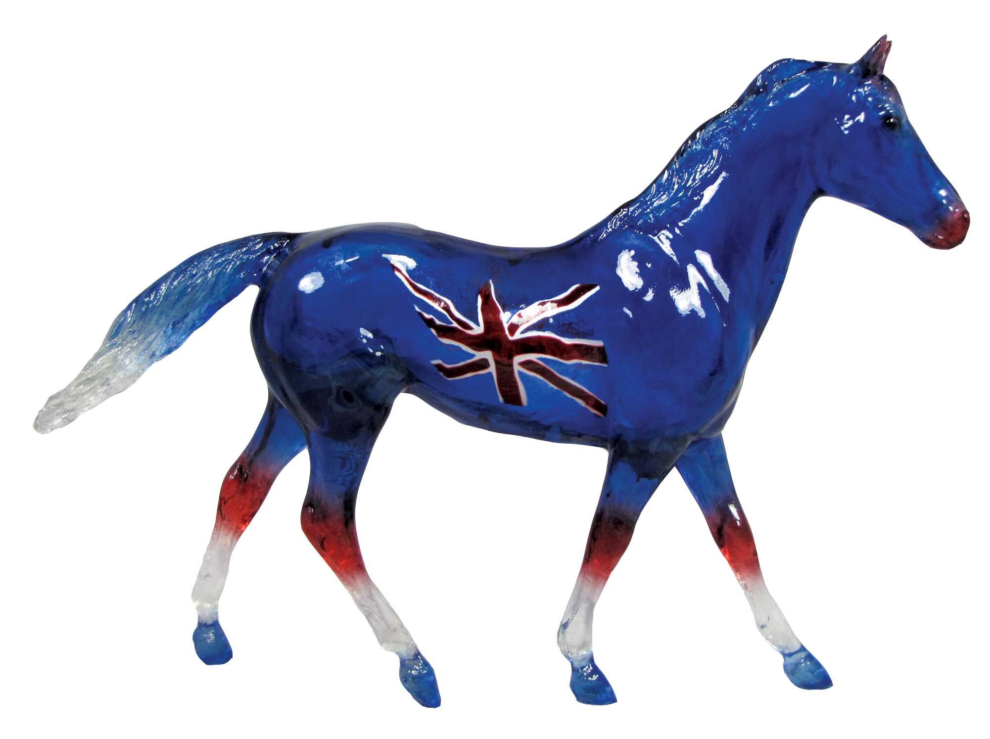 Translucent blue; red points & muzzle; Union Jack flag detail on body; BreyerFest SR; 1/350