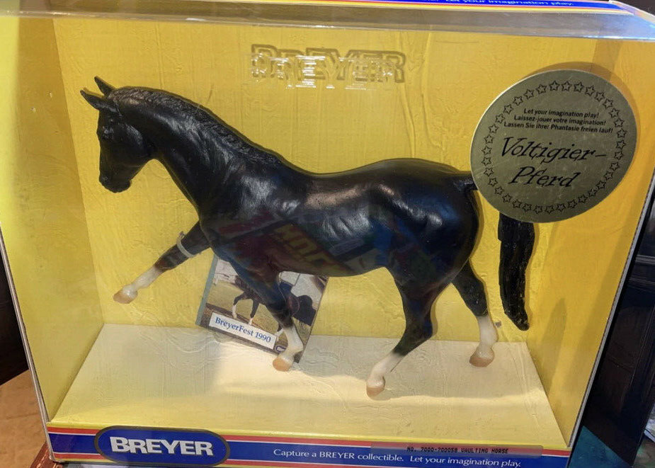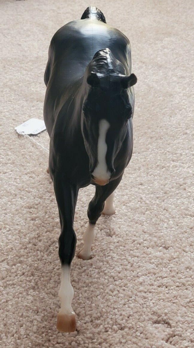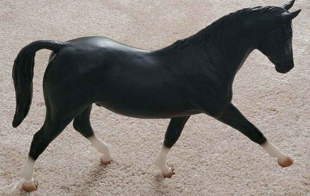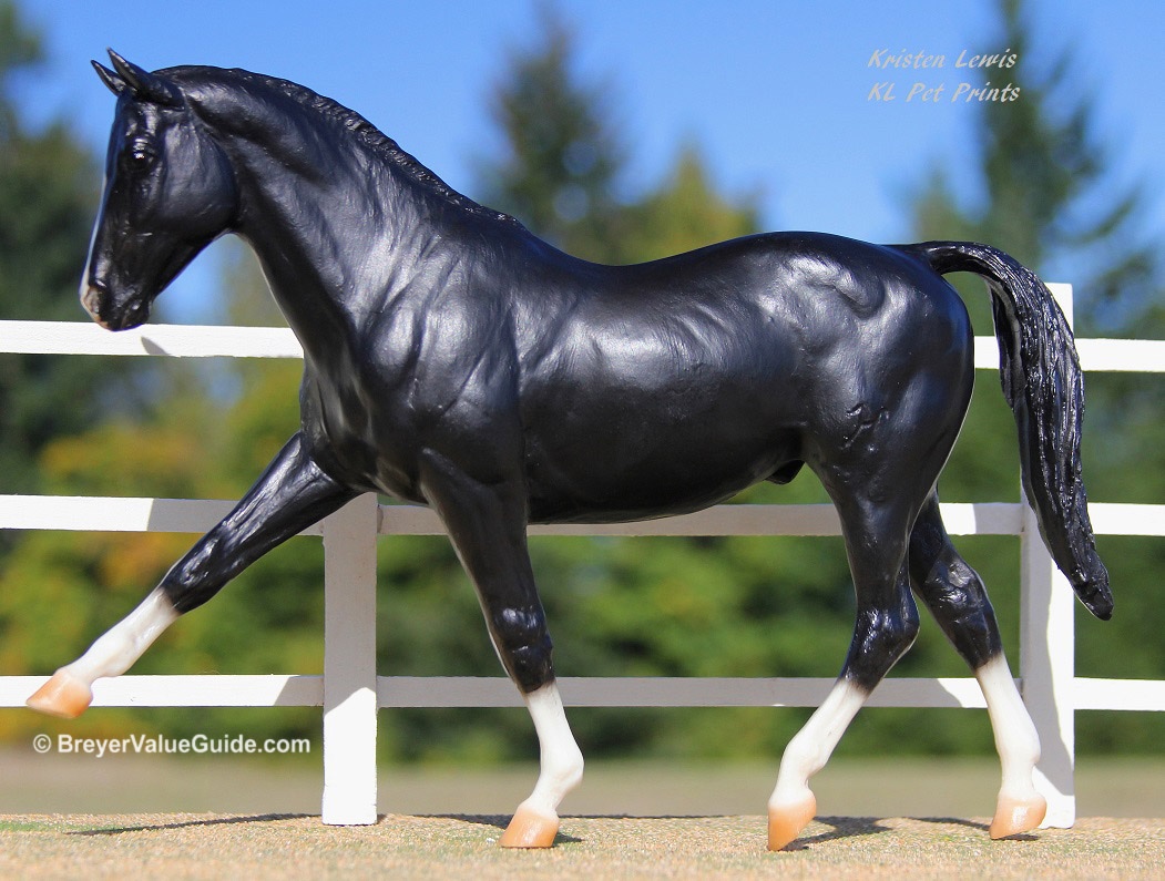 Semigloss black; blaze; 4 socks; tan hooves; SR; 1/750