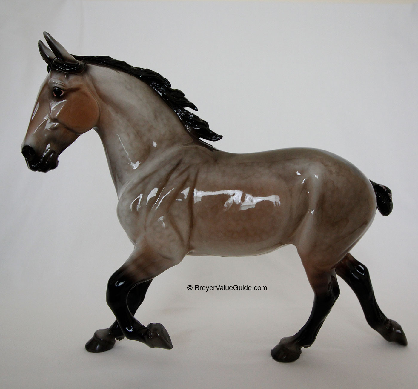Glossy dappled rose grey; black mane and tail; dark legs with leg barring; “BreyerFest 2015” stamp; BreyerFest SR; 1/1500