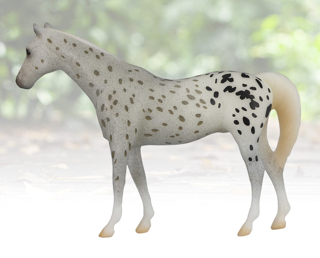 Matte leopard appaloosa, grey and black spots, roaning, stripe, tan shading in mane and tail, Stablemates Club SR