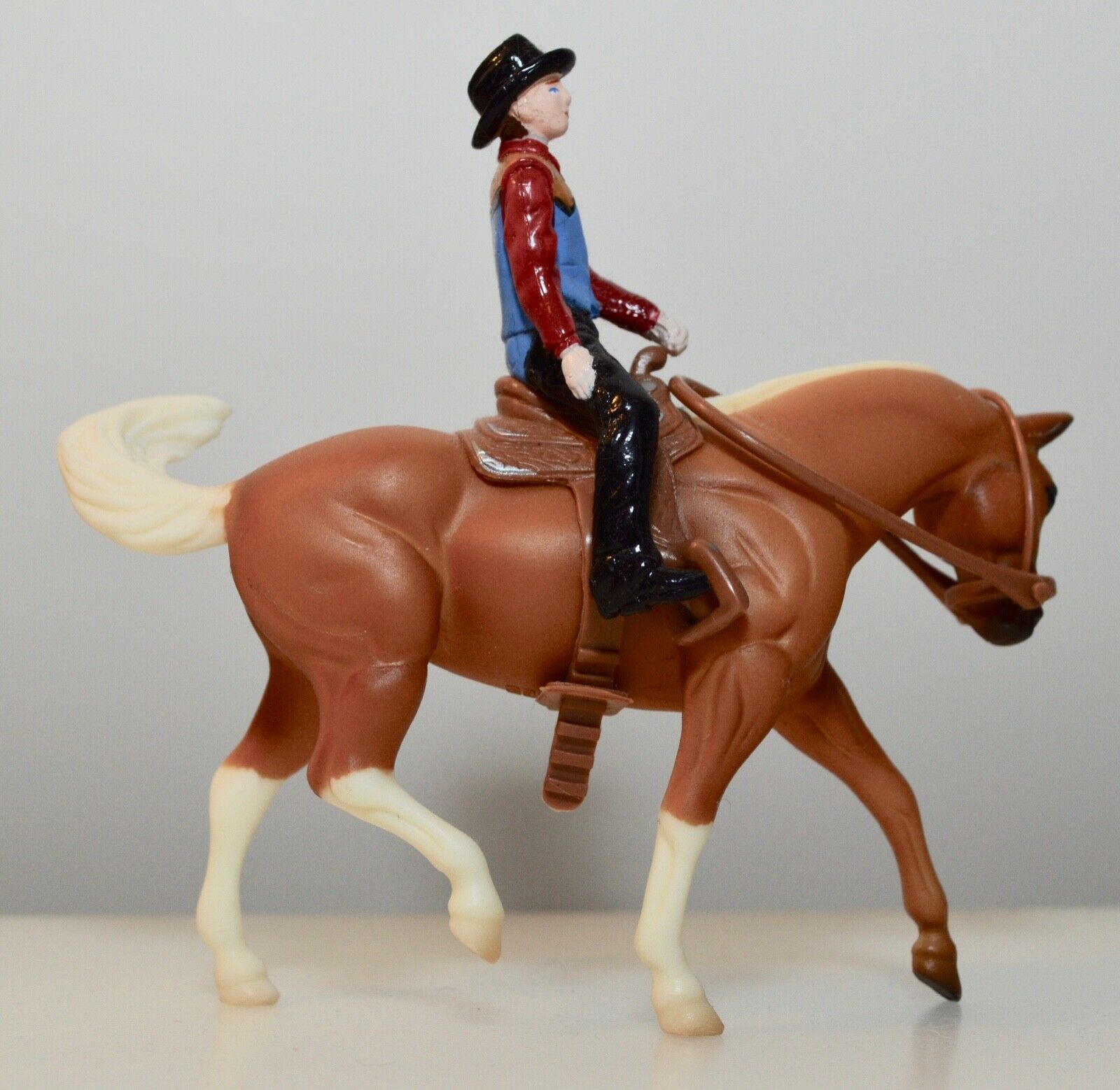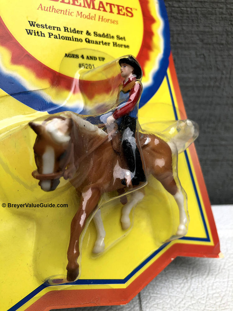 Matte palomino; wide blaze; 3 socks; with rider and tack