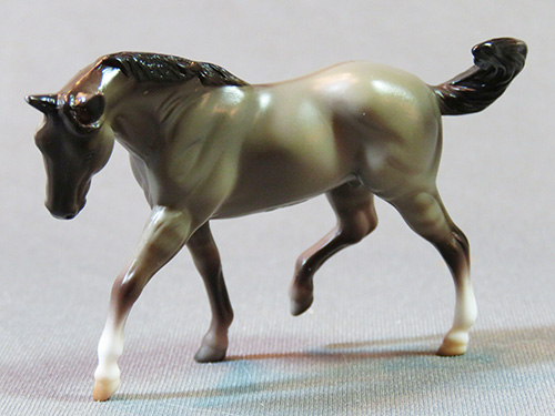 Matte grullo; dorsal stripe; leg barring; 2 socks – with Reiner, Mustang, Standing Stock Horse