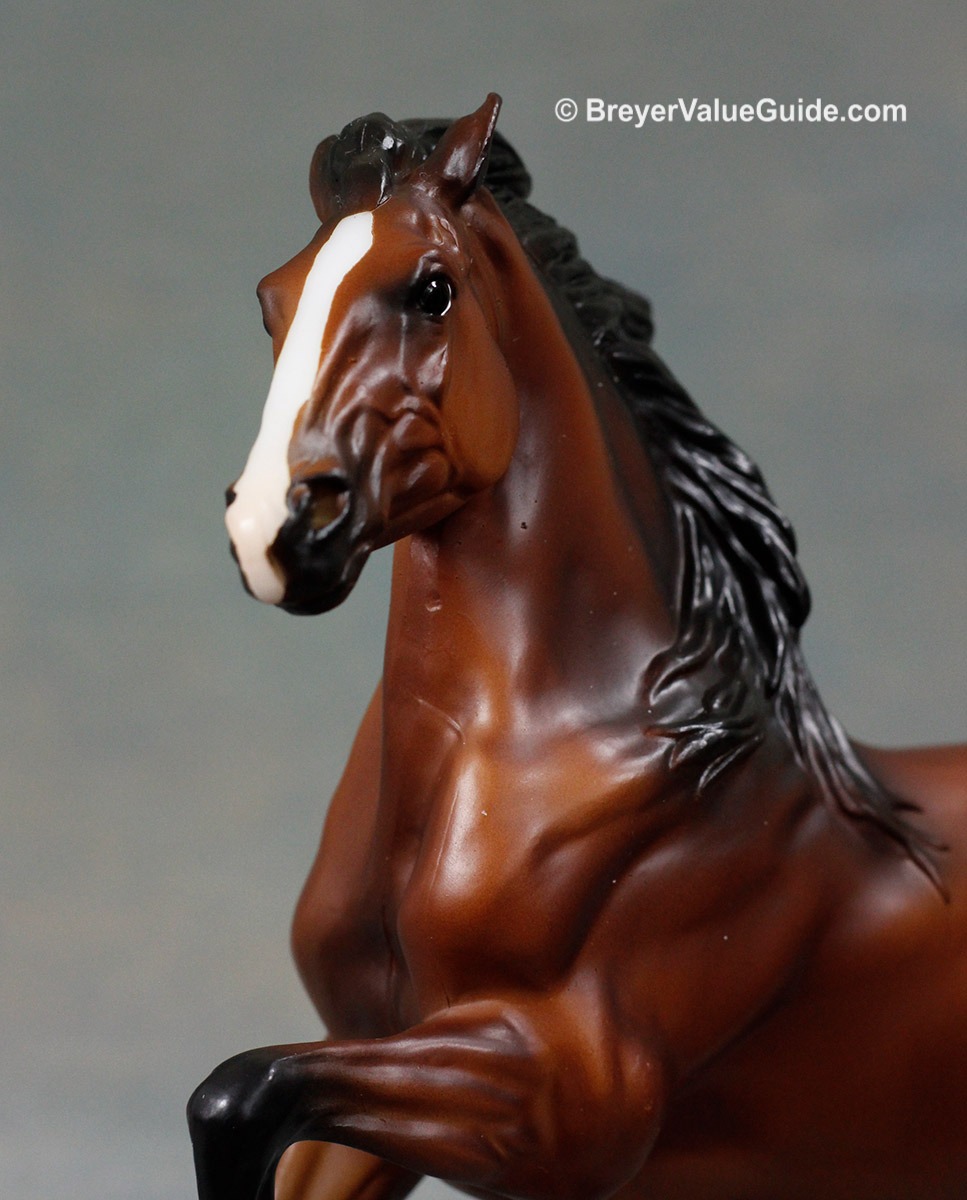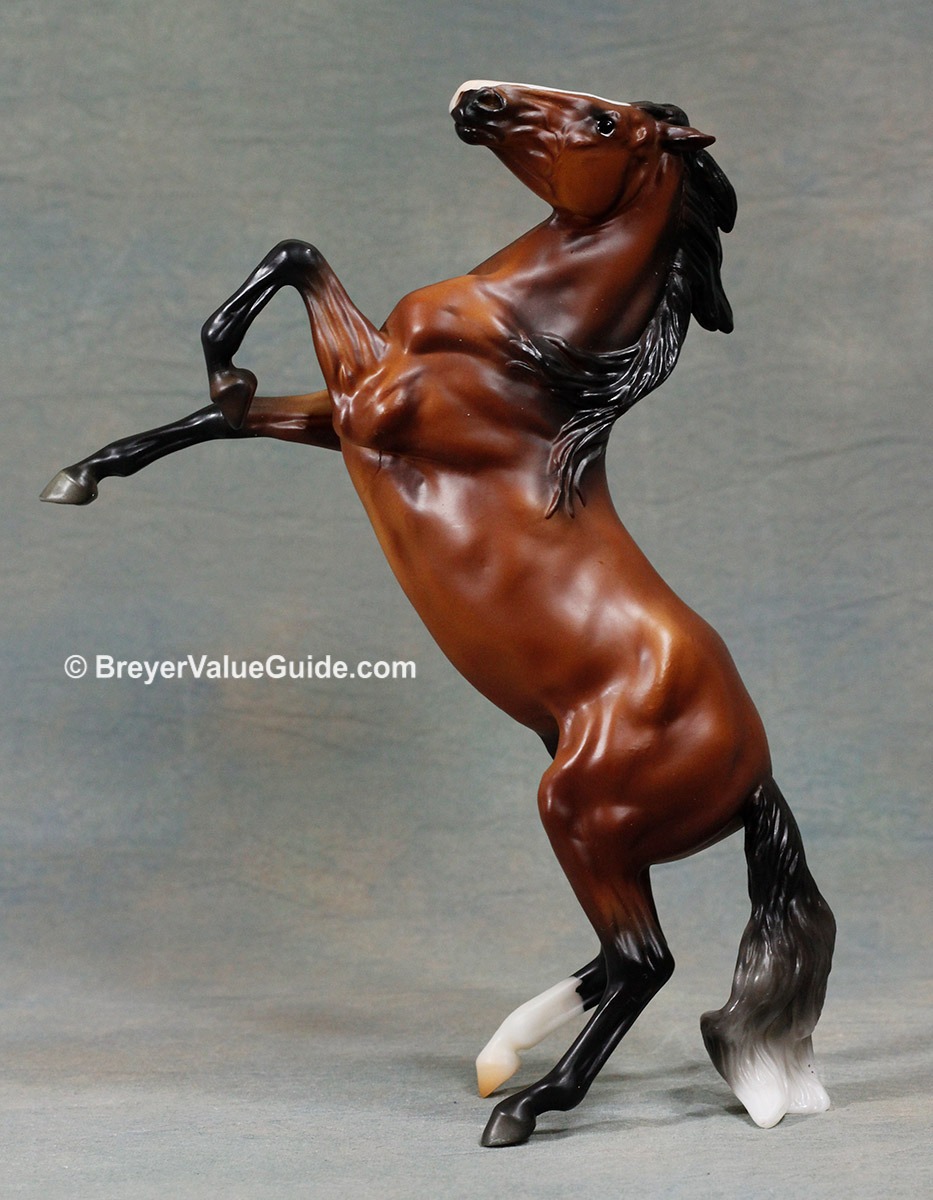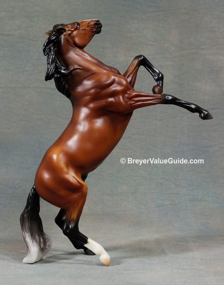 Rearing Mustang – Matte shaded bay, stripe-snip, hind socks