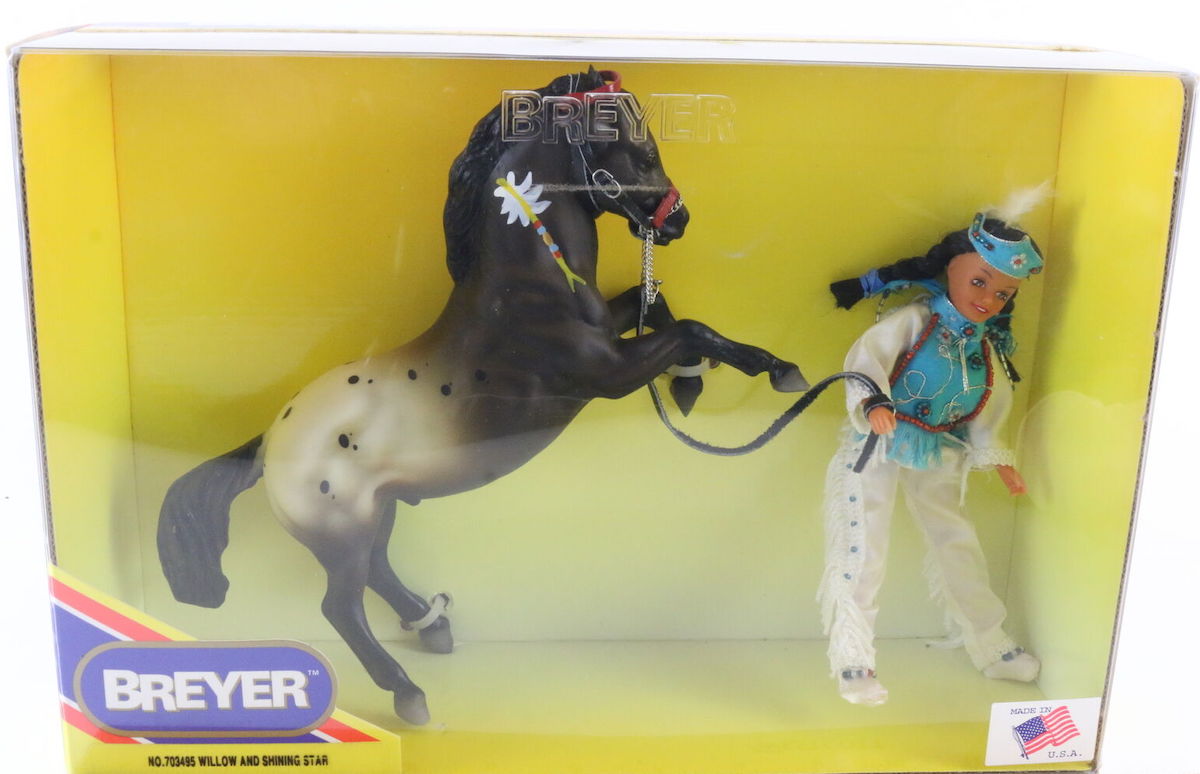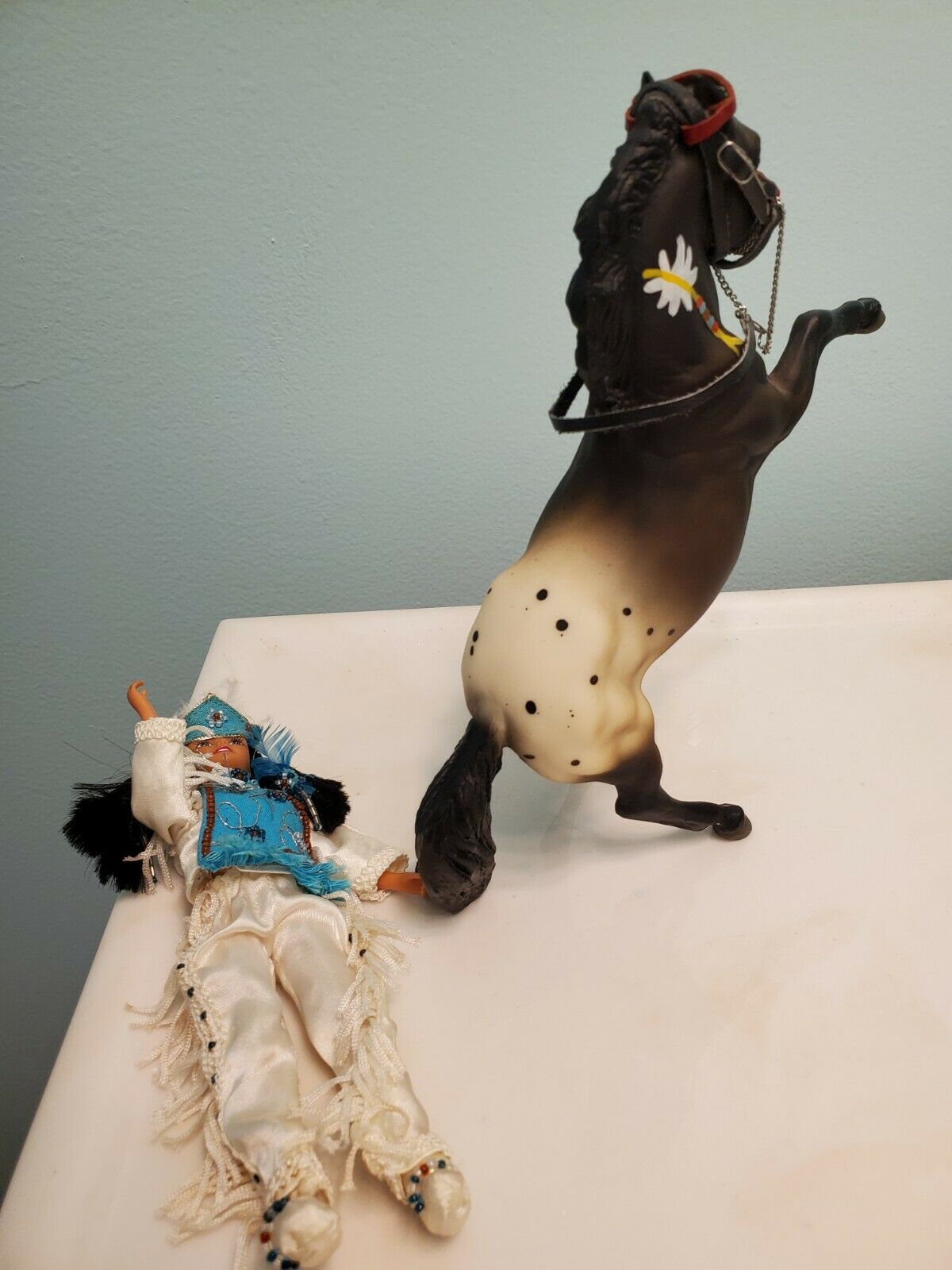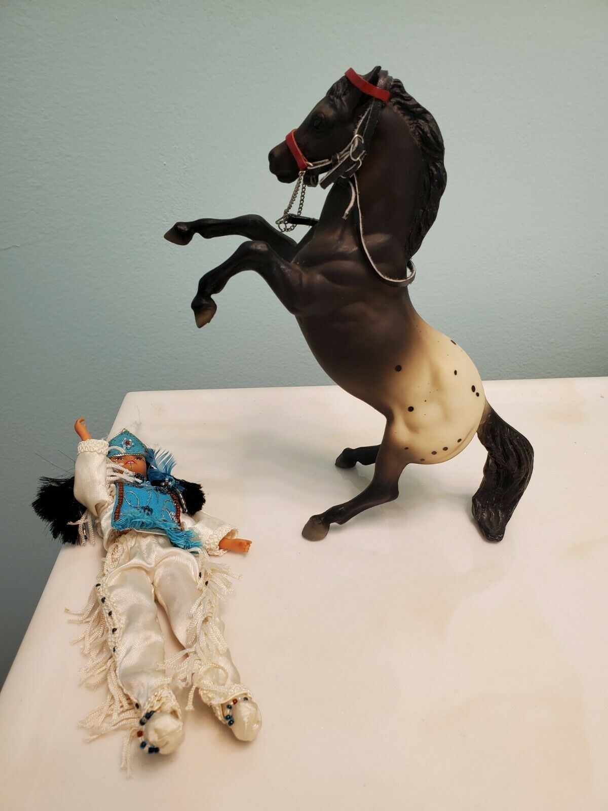Matte dark bay appaloosa; multicolored decoration on right side of neck; star; Just About Horses SR; 1/5000 – with doll and lead Valued as set.