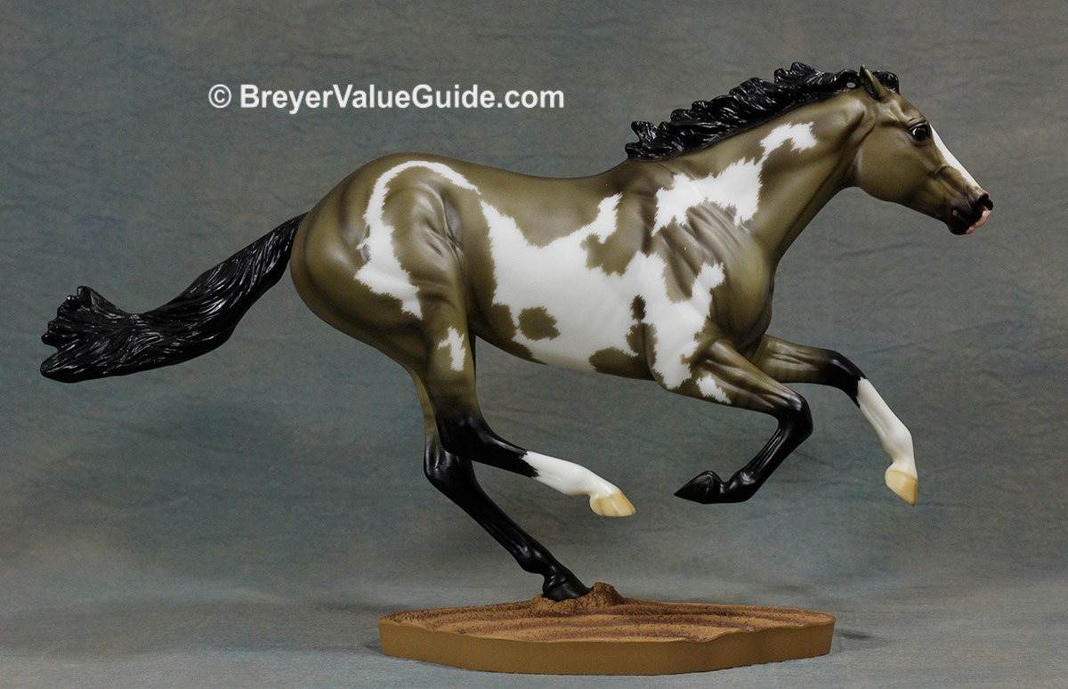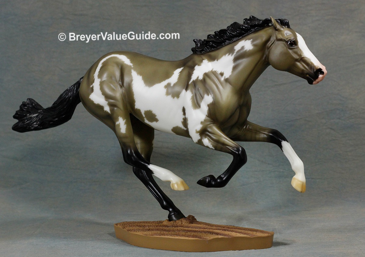 Matte grullo pinto; dorsal stripe, wide blaze over muzzle, one blue eye, 2 socks, striped hooves
