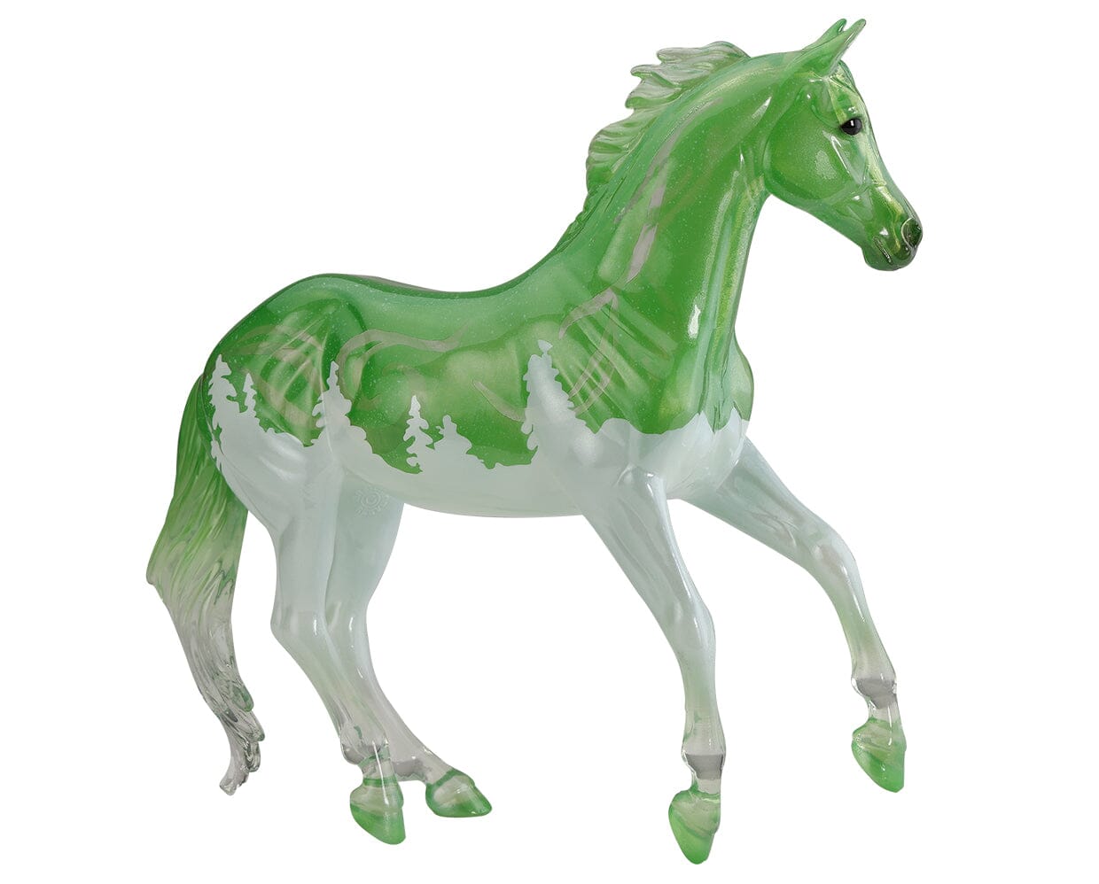 Glossy sparkly green clear ware with pearly white splash markings in the shape of spruce trees, Holiday SR Issue price: $30