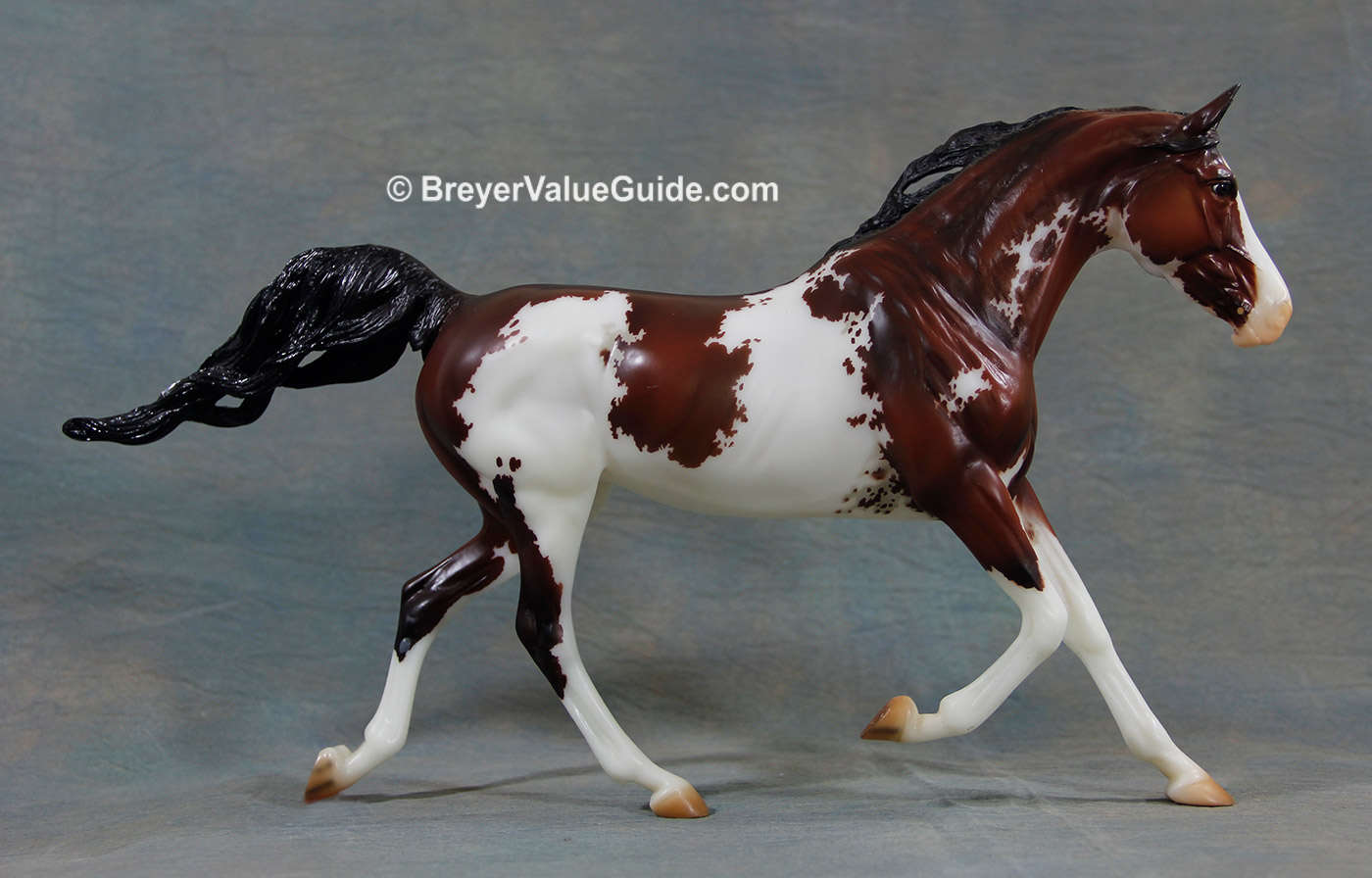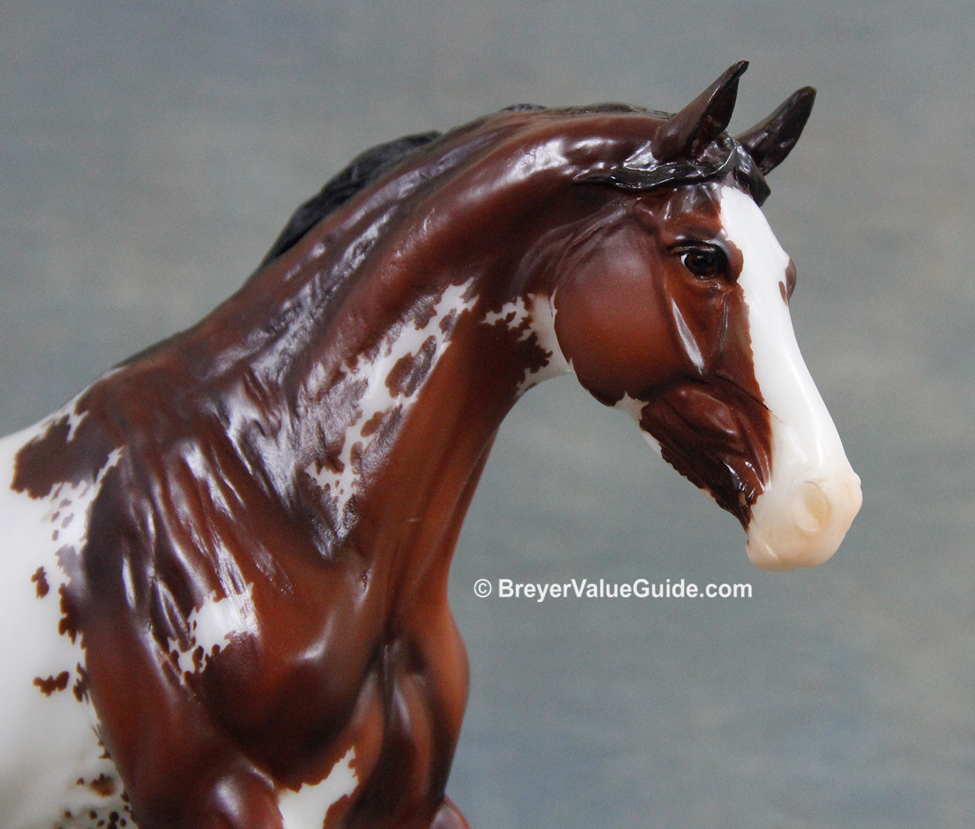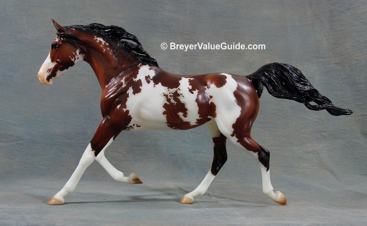 Matte bay pinto, wide blaze over muzzle, 4 high stockings, Premier Club SR