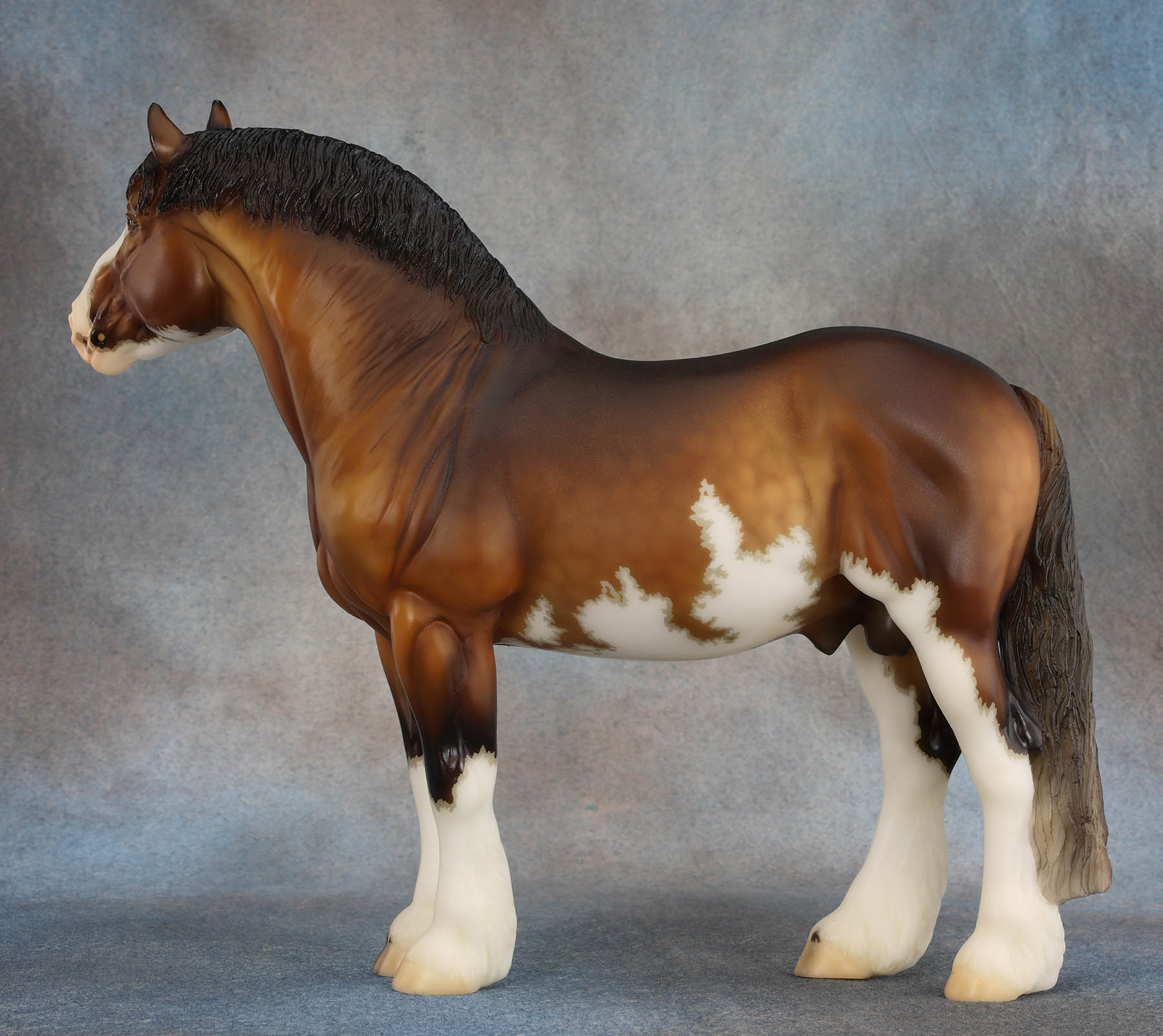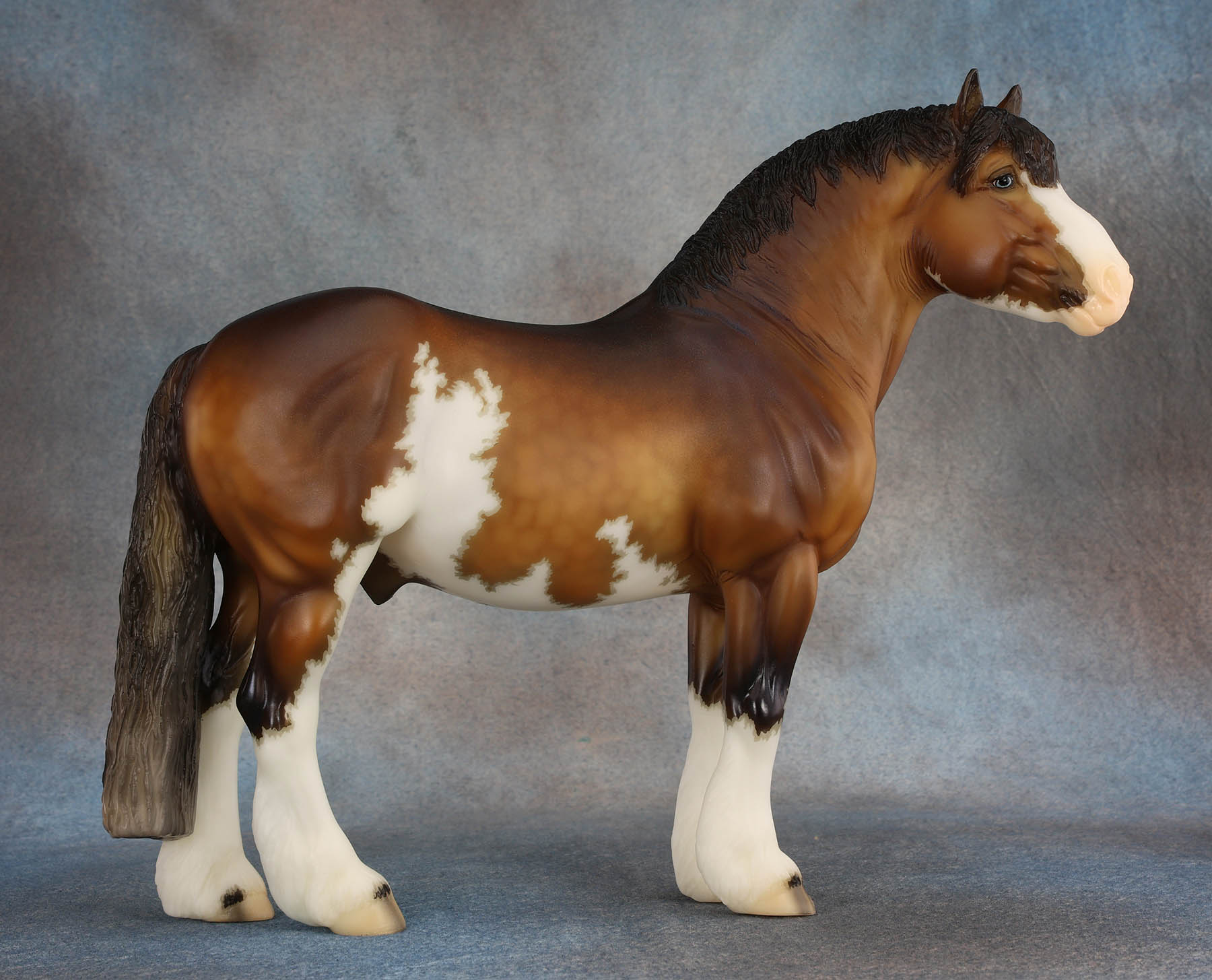 Matte dapple bay sabino with mapping and blue eyes, blaze, 4 socks, striped hooves, BreyerFest Raffle SR, 1/26