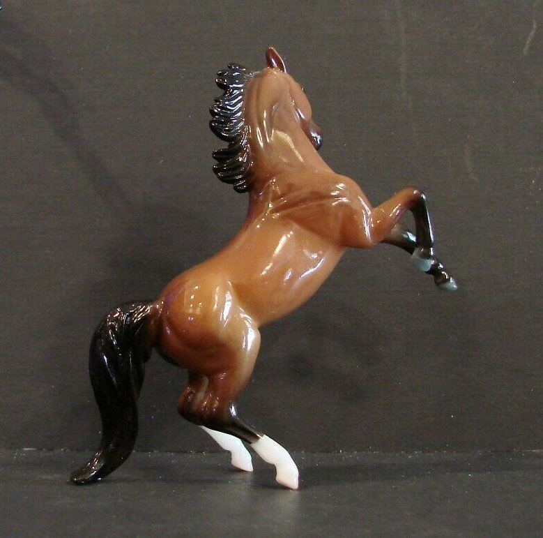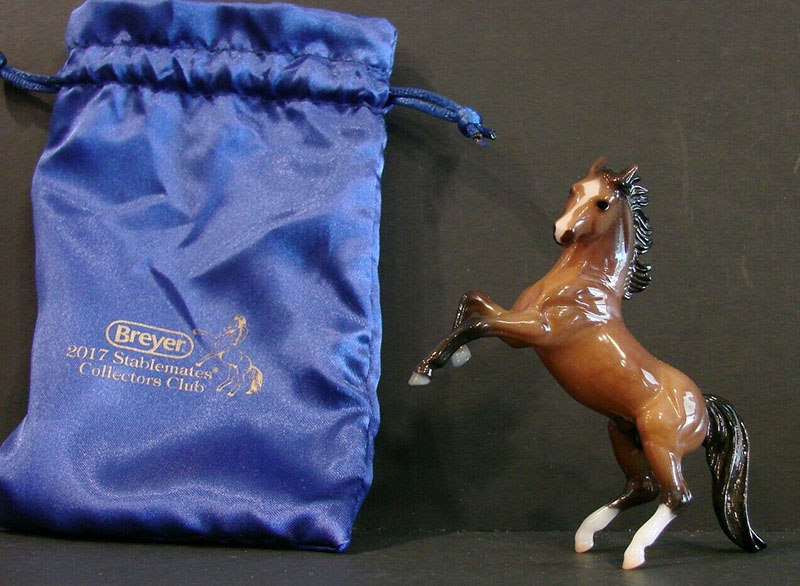 Glossy bay, dapples, blaze; 2 hind stockings, Stablemate Club SR
