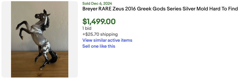 Glossy grulla blanket appaloosa; star; dorsal stripe, leg barring, striped hooves, Greek Gods Series SR; 1/240 Issue price: $160